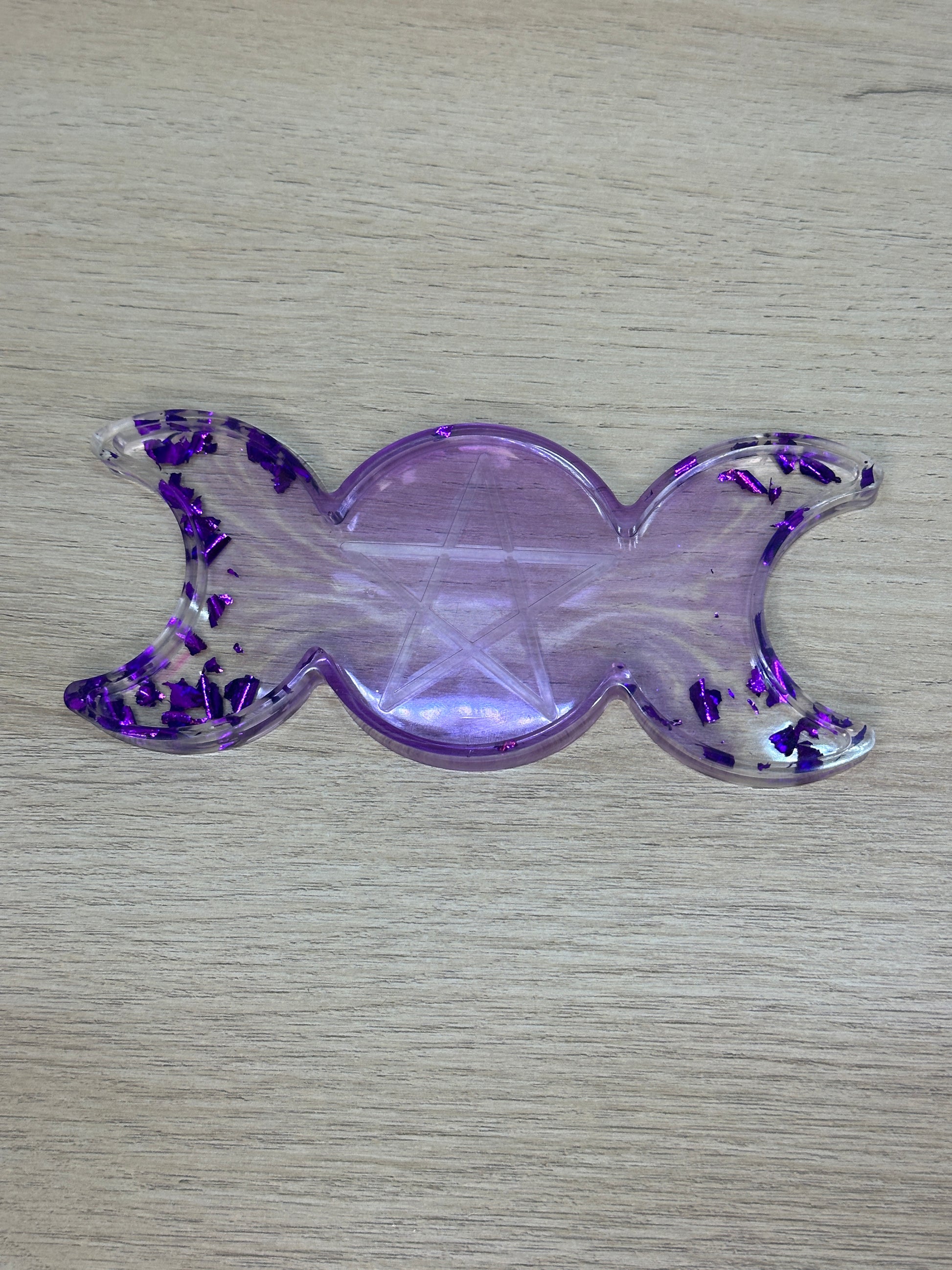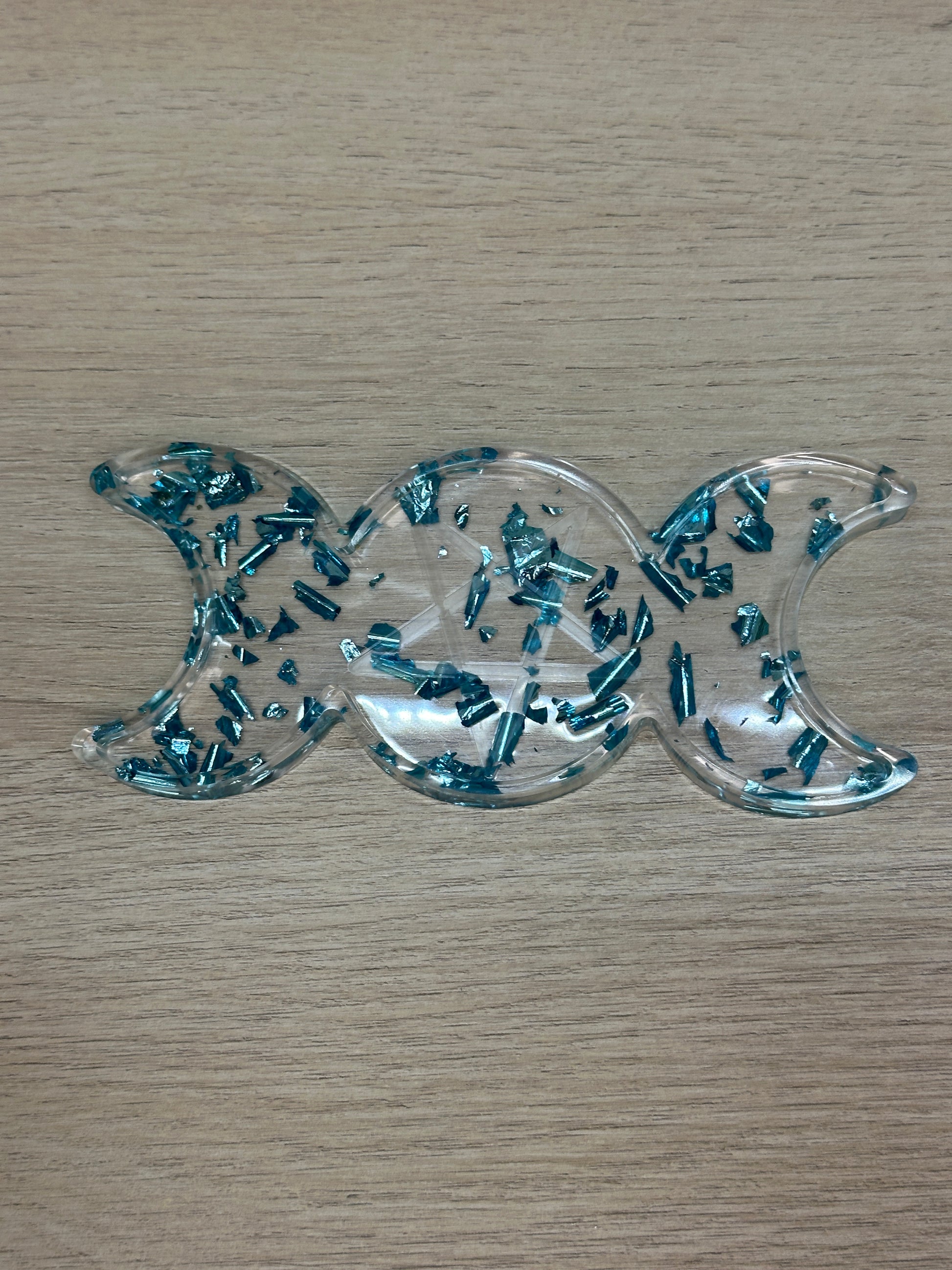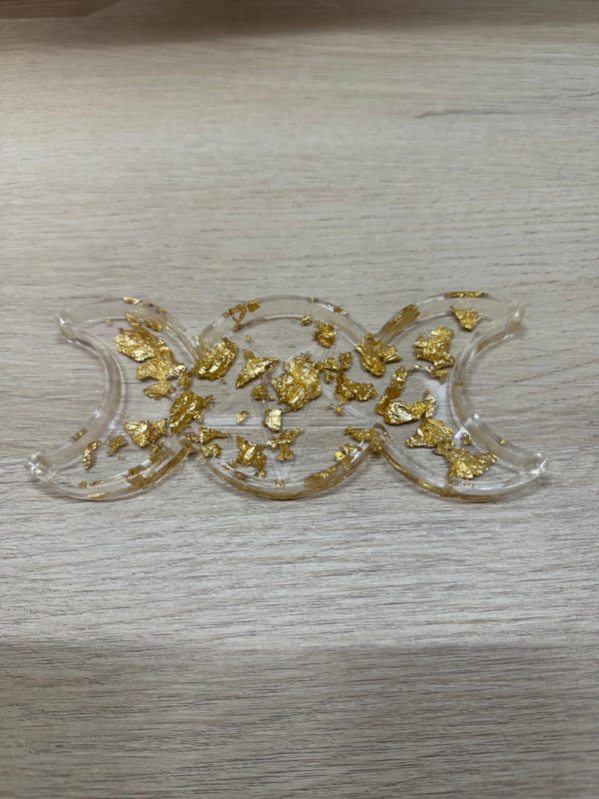 Fabriqué à la main en résine époxy, chaque modèle est unique, personnalisable avec des couleurs, paillettes ou effets métallisés. Son format compact en fait un parfait plateau à bijoux ou un bel objet décoratif à poser dans une entrée, sur une table ou une commode.