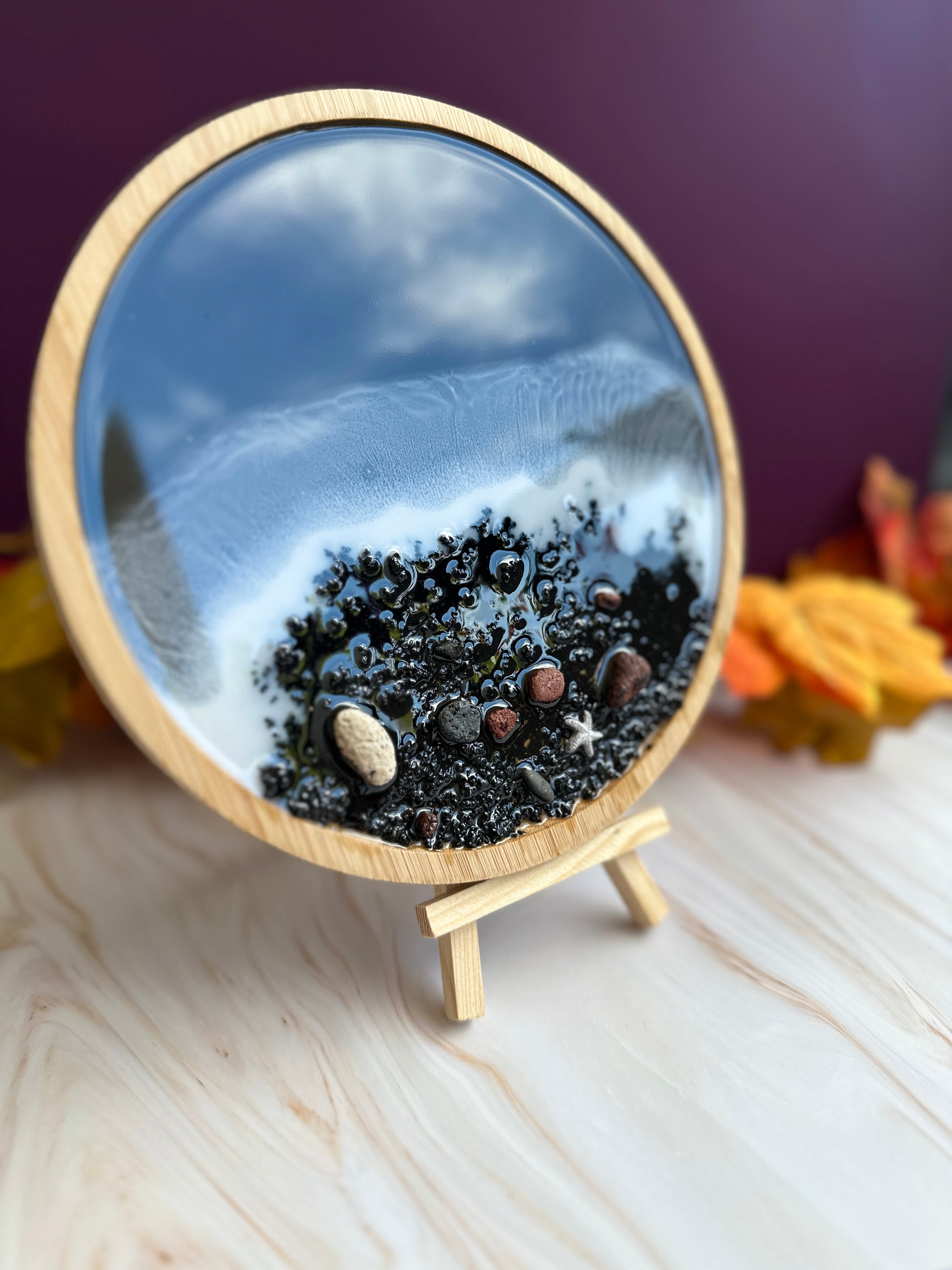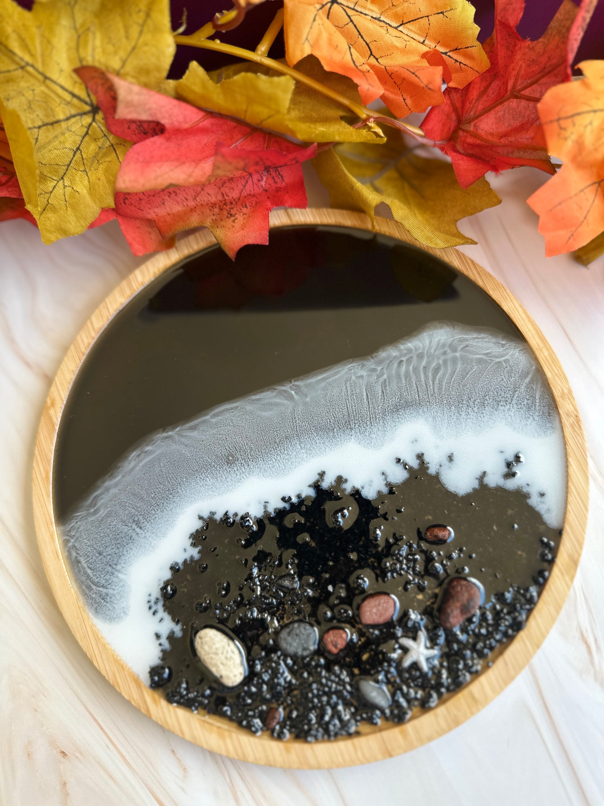 Plateau décoratif bambou & résine - effet mer
