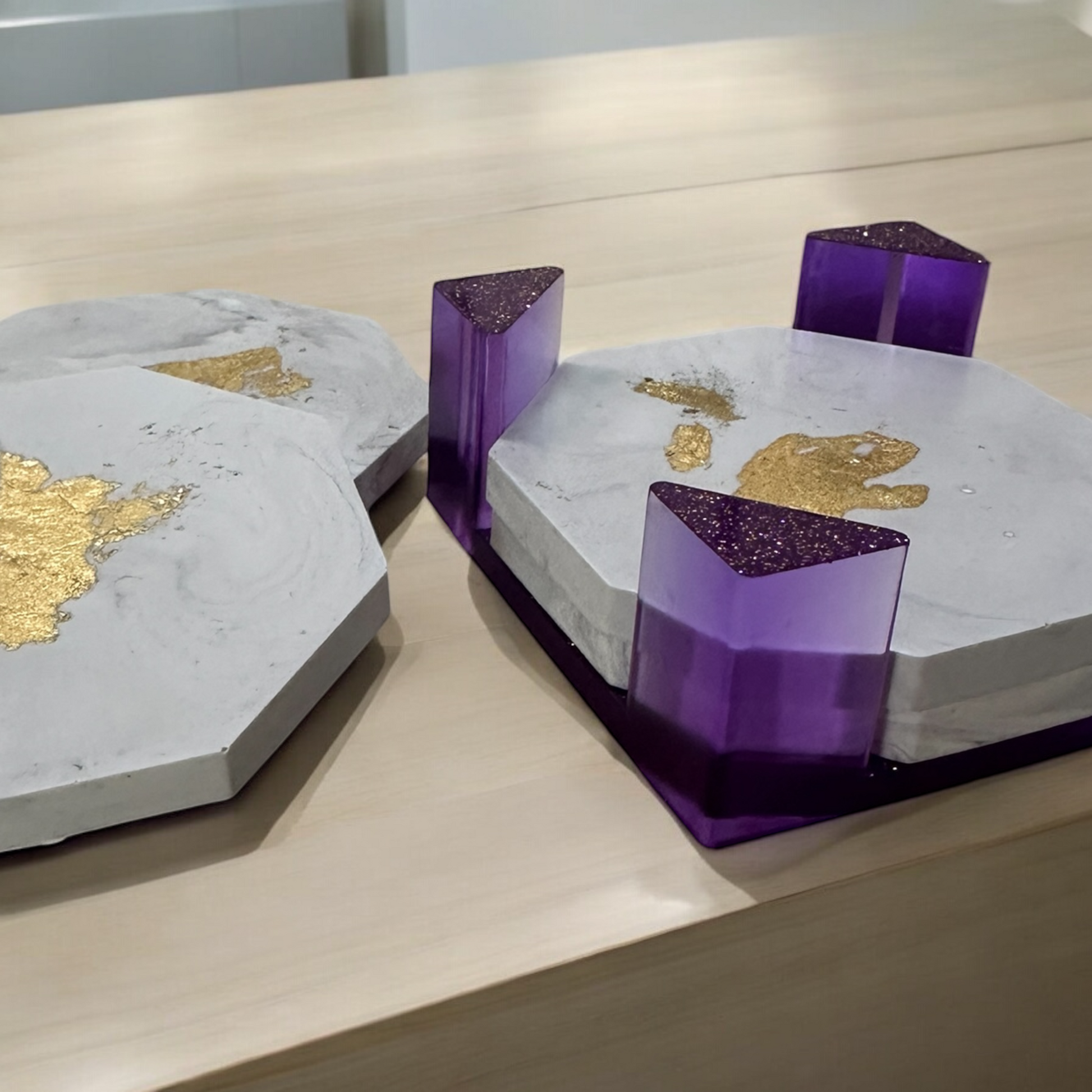 Sous-Verre en Jesmonite avec Support en Résine Époxy – Élégance et Praticité